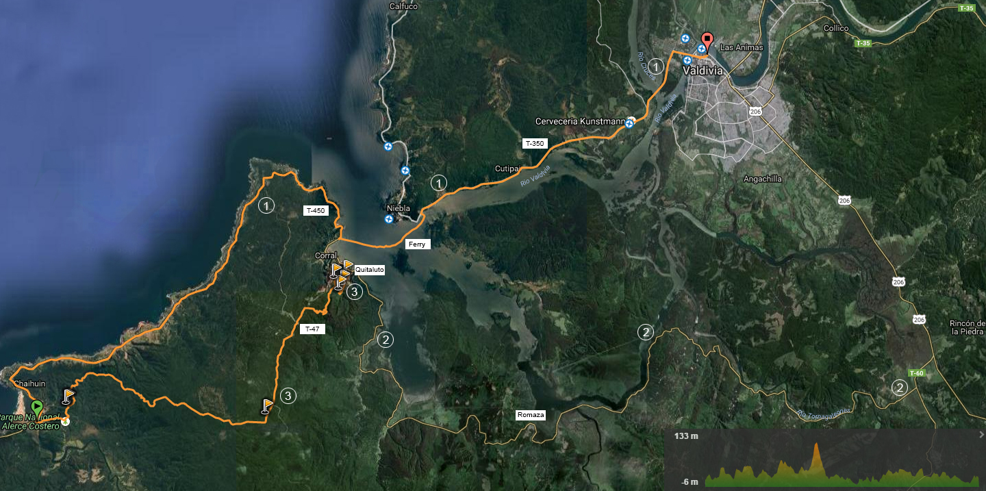 El acceso desde Valdivia tiene tres alternativas: